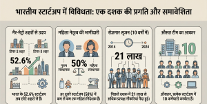 उद्योग और आंतरिक व्यापार संवर्धन विभाग यानी DPIIT की रिपोर्ट के मुताबिक, 52.6% स्टार्टअप मेट्रो शहरों से बाहर—टियर-2 और टियर-3 शहरों से हैं। इसके अलावा 50% स्टार्टअप्स में कम से कम एक महिला निदेशक शामिल हैं। ये स्टार्टअप बेबी प्रॉडक्ट्स से लेकर भारी उद्योग की मशीनें बनाने तक के सेक्टर्स में काम कर रहे हैं।