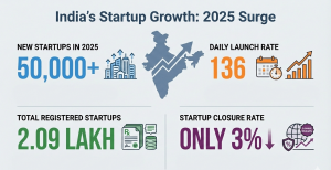 हर दिन 136 स्टार्टअप! 2025 में 50 हजार नए जुड़े, भारत में स्टार्टअप्स 2 लाख के पार; बंद होने की दर दुनिया में सबसे कम